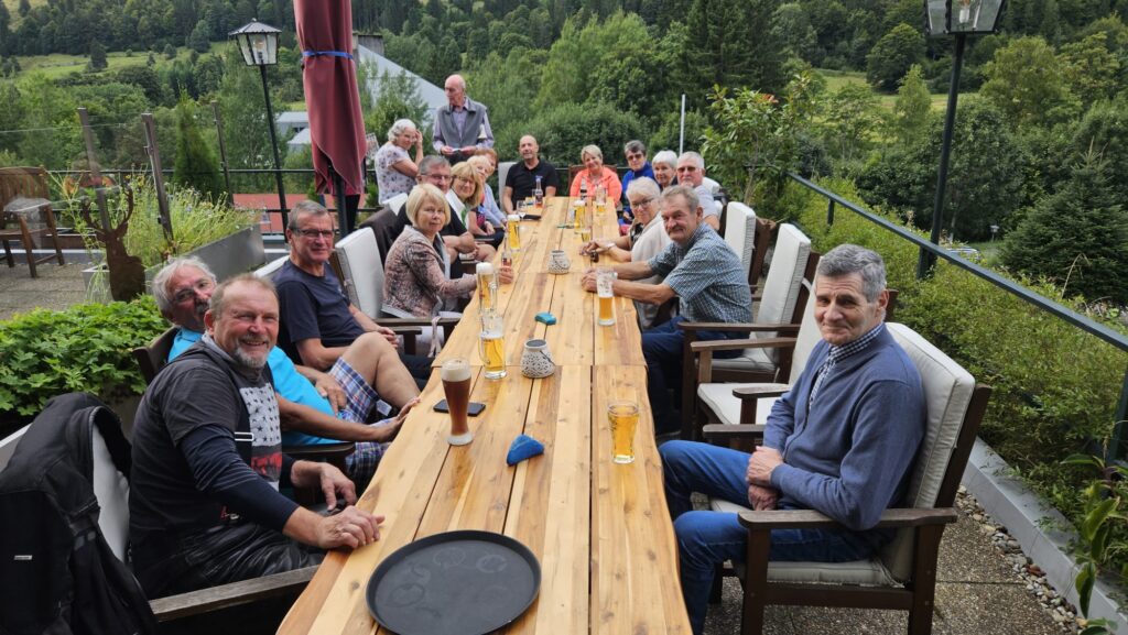 Nachdem alle Teilnehmer unter lauter und freudiger Begrüßung eingetroffen waren und in den Genuss von dem von Werner und Christa selbstgebackenen Baumstriezel kamen, wurde draußen vor dem Abendessen eine kurze, aber intensive Vorstellungsrunde, soweit nötig, durchgeführt.