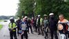 Doch gegen das Gähnen hatte man sich einiges vorgenommen. Mit dem Frühstück kamen die Lebensgeister wieder, und bis zum ersten Gruppenbild hatten sich schon alle wachgelacht. Auch die beiden Wander-Tagesgäste Helmuth und Georg stellten sich ein, und kaum waren die Motorisierten in die Nebelwand losgedonnert, da setzte sich auch der bunte Pulk der Rucksackträger per pedes in Bewegung – erstmal nur bis zu den Autos. Das Ziel, der höchste Hügel unmittelbar neben dem Ammersee, der Schatzberg, lag zu weit weg für eine gemütliche Wanderung, und so fuhren ihm einige Fahrgemeinschaften bis zum Parkplatz am Dießener Marienmünster entgegen.